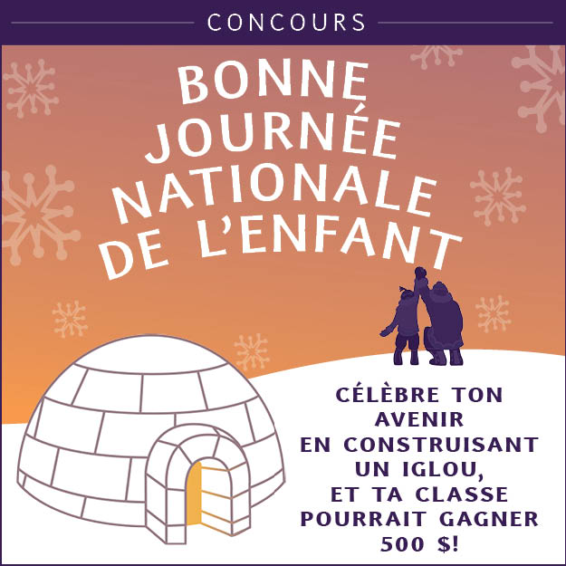 Dans le courriel d’inscription, assurez-vous d’inclure le nom de l’enseignant(e), le nom de l’école, et la communauté. Les envois de chaque classe seront inscrits à un tirage au sort dans leur région respective, et une classe gagnante par région remportera une carte-cadeau de 500 $ à dépenser au magasin de son choix! Les gagnant(e)s seront informé(e)s le 12 décembre.